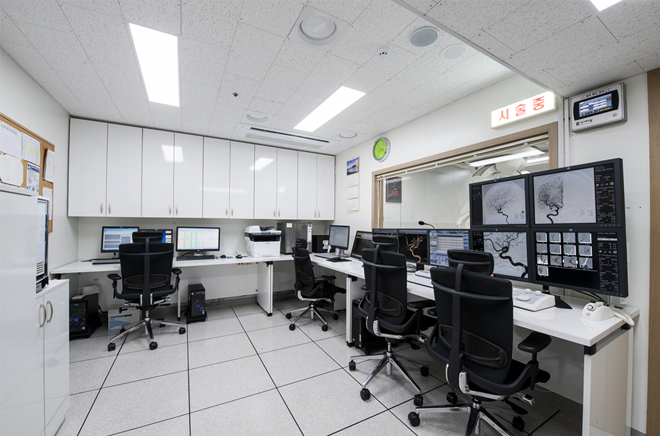 CT, 초음파, 심전도, 혈관조영검사 등 다양한 검사를 모두 한 곳에서 진행할 수 있는 전문적인 시설과 타 병원에 흔치 않은 첨단 혈관촬영장비, 경험이 풍부한 의료진까지, 집중력이 필요한 시술과 응급상황에 대처할 수 있는 원스톱 시스템을 구축했습니다.