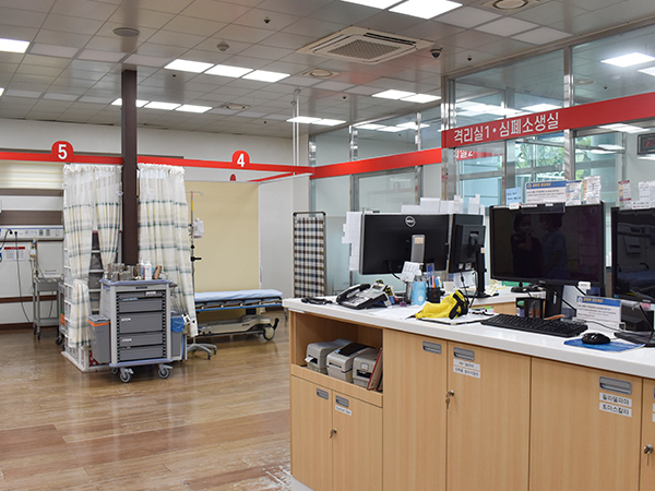 한도병원 응급의료센터에서는 인턴이나 레지던트가 아니라 5명의 응급의학과 전문의를 비롯해 풍부한 경험을 갖춘 간호사, 응급의료정보 전담 인력 등이 효율적으로 배치되어 있습니다. 전국적으로도 이정도의 응급의학과 전문의를 갖춘 응급의료기관은 많지 않습니다. 일찍부터 응급의료센터의 중요성을 인식한 한도병원이 오랜 투자를 아끼지 않은 결과입니다.